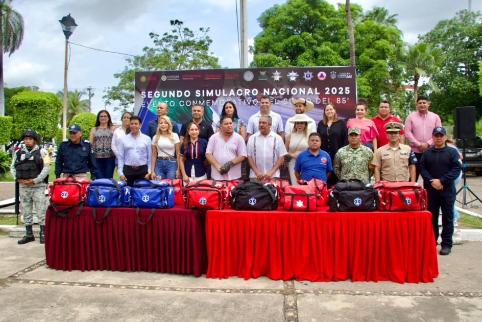 Cd. Lázaro Cárdenas, Michoacán a 19 de Septiembre del 2025.- Después de concluir con éxito el 2do. Simulacro Nacional que formó parte de la conmemoración del 40° aniversario del terremoto de 1985; el Presidente Municipal Manuel Esquivel Bejarano, acompañado del Senador Raúl Morón Orozco y la Diputada Local, Itzé Camacho Zapiain hicieron entrega de reconocimientos y kits a las diferentes corporaciones de rescate que participaron.