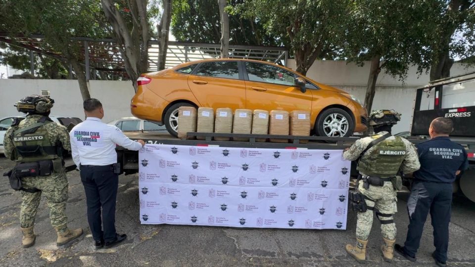 El enervante fue localizado por el personal del Agrupamiento de Seguridad Vial de la Guardia Civil mientras realizaba patrullajes preventivos sobre la carretera Pátzcuaro-Morelia, a la altura de la Finca La Vikina, correspondiente a la tenencia de Santiago Undameo, en un vehículo de la marca Ford, línea Fiesta, color naranja.