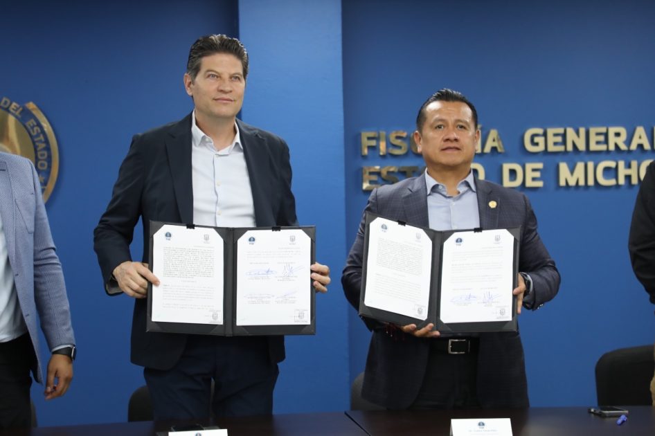 Morelia, Michoacán, a 20 de febrero de 2026.-En un acto de coordinación estratégica para fortalecer la seguridad y la procuración de justicia en la capital del estado, la Fiscalía General del Estado de Michoacán (FGE) y el H. Ayuntamiento de Morelia firmaron tres convenios de colaboración en materia de investigación de delitos de alto impacto, recepción de denuncias a través de medios digitales y búsqueda inmediata de personas desaparecidas o no localizadas.