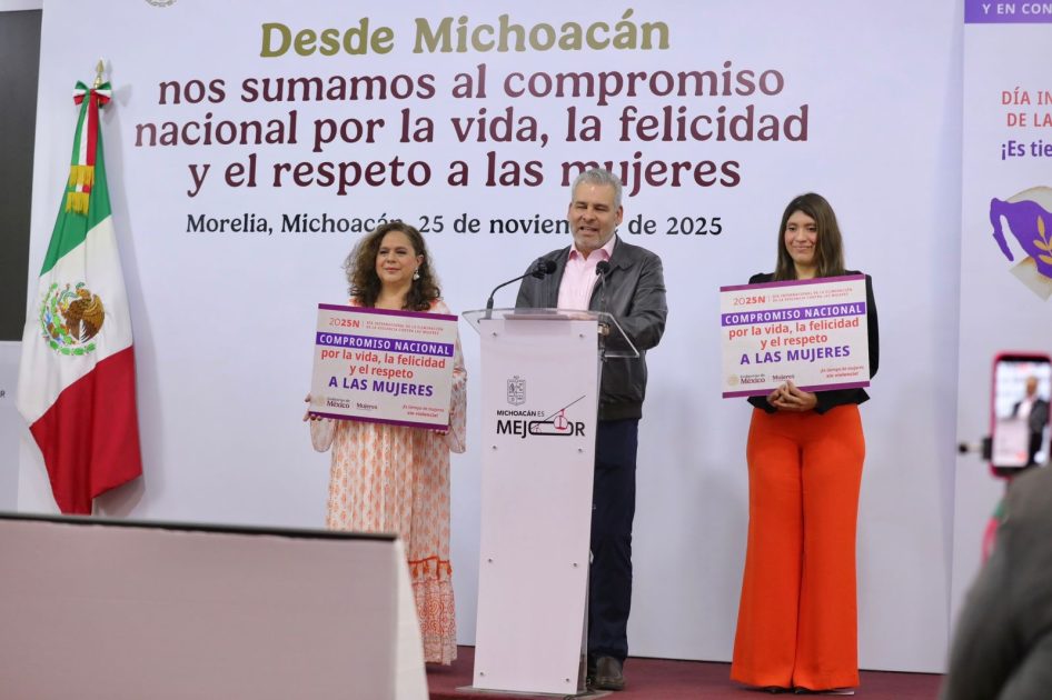 Morelia, Michoacán, 25 de noviembre de 2025.- Michoacán avanza hacia la consolidación de centros de trabajo donde puedan desempeñarse las actividades diarias sin miedo, sin condicionamiento y sin violencia hacia las mujeres, destacó el gobernador Alfredo Ramírez Bedolla.