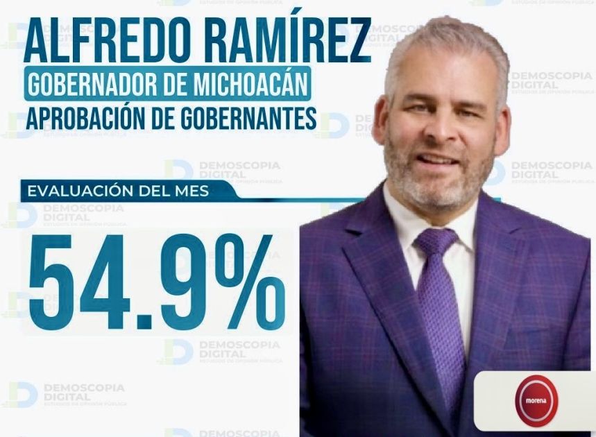 Morelia, Michoacán, 4 de abril de 2026.-El respaldo ciudadano hacia el gobernador de Michoacán, Alfredo Ramírez Bedolla, registró un crecimiento significativo durante el mes de marzo de 2026. De acuerdo con el más reciente Ranking de Gobernadores de la encuestadora Demoscopia Digital, el mandatario estatal logró un incremento de 3.8 puntos porcentuales en su nivel de aprobación.